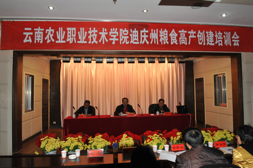 9月15日早上8:30,开班仪式在香格里拉县举行。学院何明东副院长、迪庆州农牧局党委书记、局长杨树奇出席仪式。何副院长首先致辞,向大家介绍了我院悠久的办学历史和优良的办学成果,并着重介绍了我院长期以来在社会服务方面所作出的突出贡献。何副院长指出,粮食高产创建是这几年农业部门的一项十分重要的工作。云南省第九次党代会作出了大力发展高原特色农业的重大部署,将重点要推进“高原粮仓、特色经作、山地牧业、淡水渔业、高效林业、开放农业”六大特色农业,高原粮仓是排在第一位的,可见省委对粮食生产的高度重视。因此,本次培训对迪庆州农业高产创建来说意义重大。同时,也要求学院的老师要虚心向基层学习,向实践学习,向群众学习,进一步提高教书育人的本领。