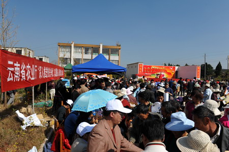 嵩明县牛栏江镇内冬日阳光温暖,高原中午强烈的阳光抵挡不住广大农民群众渴求科技知识的高涨热情,一大早,十里八乡成千上万的农民群众陆续地汇集到活动现场翘首以盼。此时,现场已是人头攒动,黑压压的一片。各个咨询台被围得水泄不通,专家们耐心地一一解答农民们的各种提问,前来咨询和索取资料的农民朋友络绎不绝……。