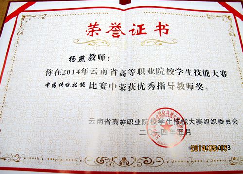 第二届云南省职业技能大赛已经圆满结束,鸭脖农学院在大赛中共参加三个项目的比赛,其中两个项目——中药传统技能大赛、林木种子检验大赛均获佳节,中药传统技能大赛获得第一名和第二名,林木种子检验大赛获得第三名的好成绩。指导教师荣获优秀指导教师称号。