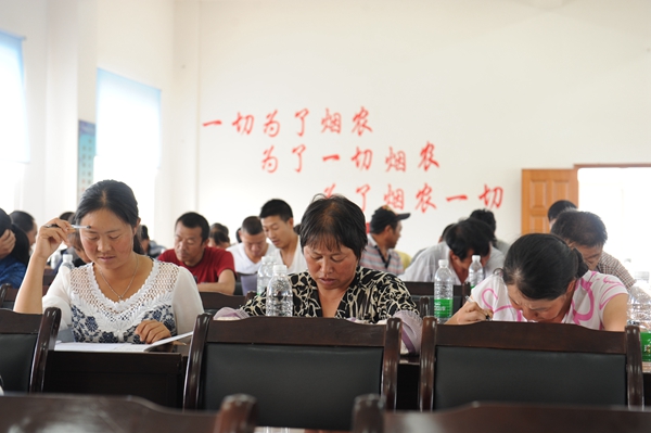 6月29日-7月4日,云南省职业烟农培训试点班在曲靖市马龙县、陆良县,楚雄禄丰县、大姚县同时展开。学校农职业教育培训中心在王军明副主任带领下,全体人员及学校相关教师出动,自始至终负责组织和协调。学校多位高水平教师分别前往各县十个镇进行职业烟农培训,共计1500余人参加了此次培训。培训以职业烟农概述及烟草生产重要性、涉农政策法规及生产管理和烟叶关键生产技术三个模块为授课内容展开。每项培训内容为半天,并安排半天进行集中考核。当地县烟草公司主持培训班开班仪式,州市、县烟草公司领导及地方党委、人大、政府、政协多位领导出席,学校党政领导、统战部张红武部长等部门领导分别组织和参加各地的开班典礼。5个二级学院的主要领导有的亲自为烟农上课,有的到达培训现场指导和看望教师。农职培训中心干部及班主任认真组织,与烟草部门、受训烟农广泛交流。所有授课老师 精心准备课件,无课的时候也全程到现场观摩教学,课堂讲授深入浅出,用烟农喜闻乐见的方式进行授课。参训烟农学习认真,积极互动,踊跃发言。为了确保受训效果,结合当地烟农实际情况,学校对参训烟农精心组织了考核。并为参加培训的烟农颁发“云南省职业烟农培训证书”。