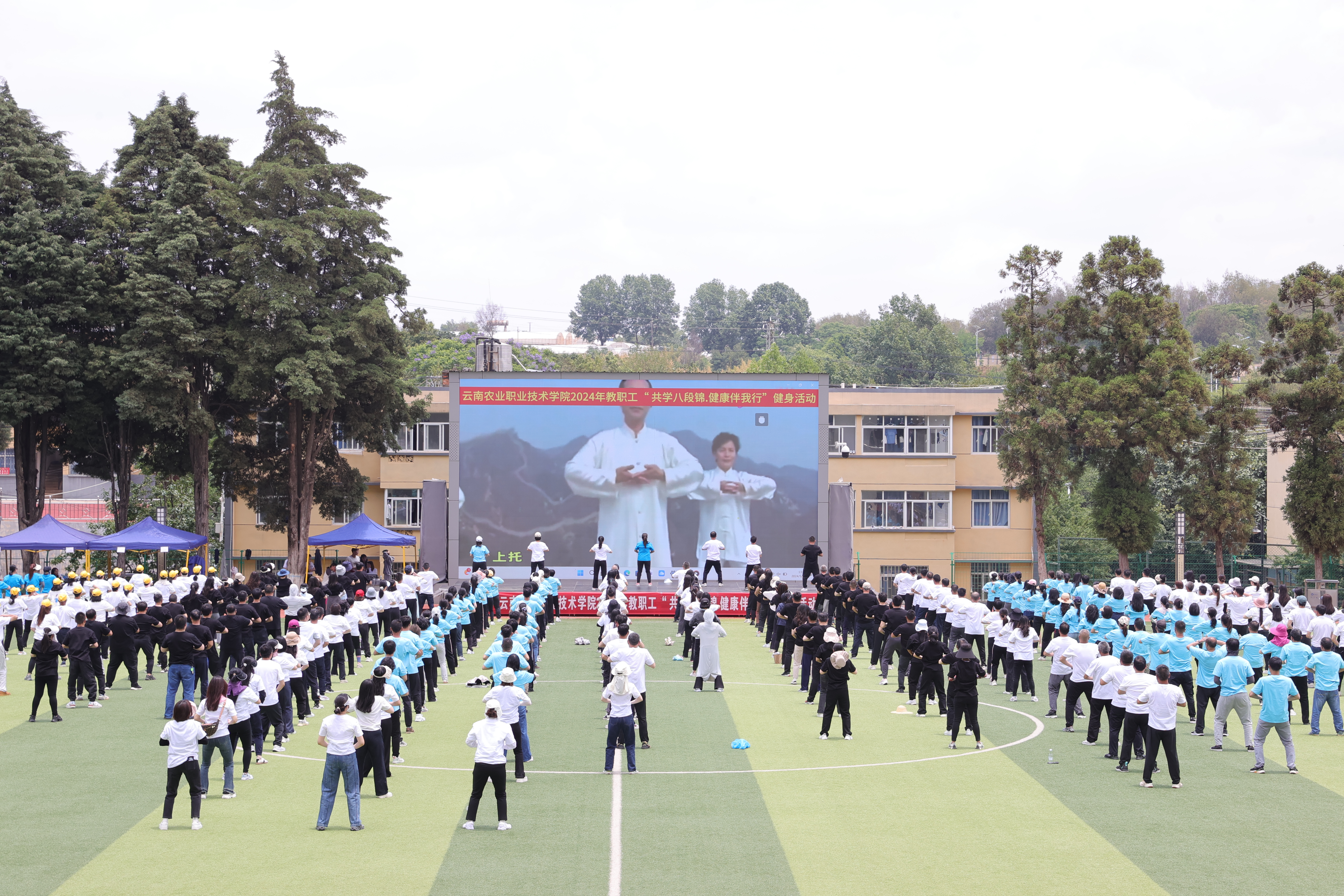 通知中心为响应国家全民健身的号召,推动校园文体活动的深入开展,5月22日,校工会举办了“共学八段锦,健康伴我行”活动,旨在通过中华传统健身气功八段锦的学习,让教职工们在繁忙的生活中找到锻炼的乐趣,享受健康的生活,来自全校340余名教职工积极参与。学院党委书记文俊、党委副书记伍学龙、纪委书记冯志宏、副院长田应华等出席此次活动。