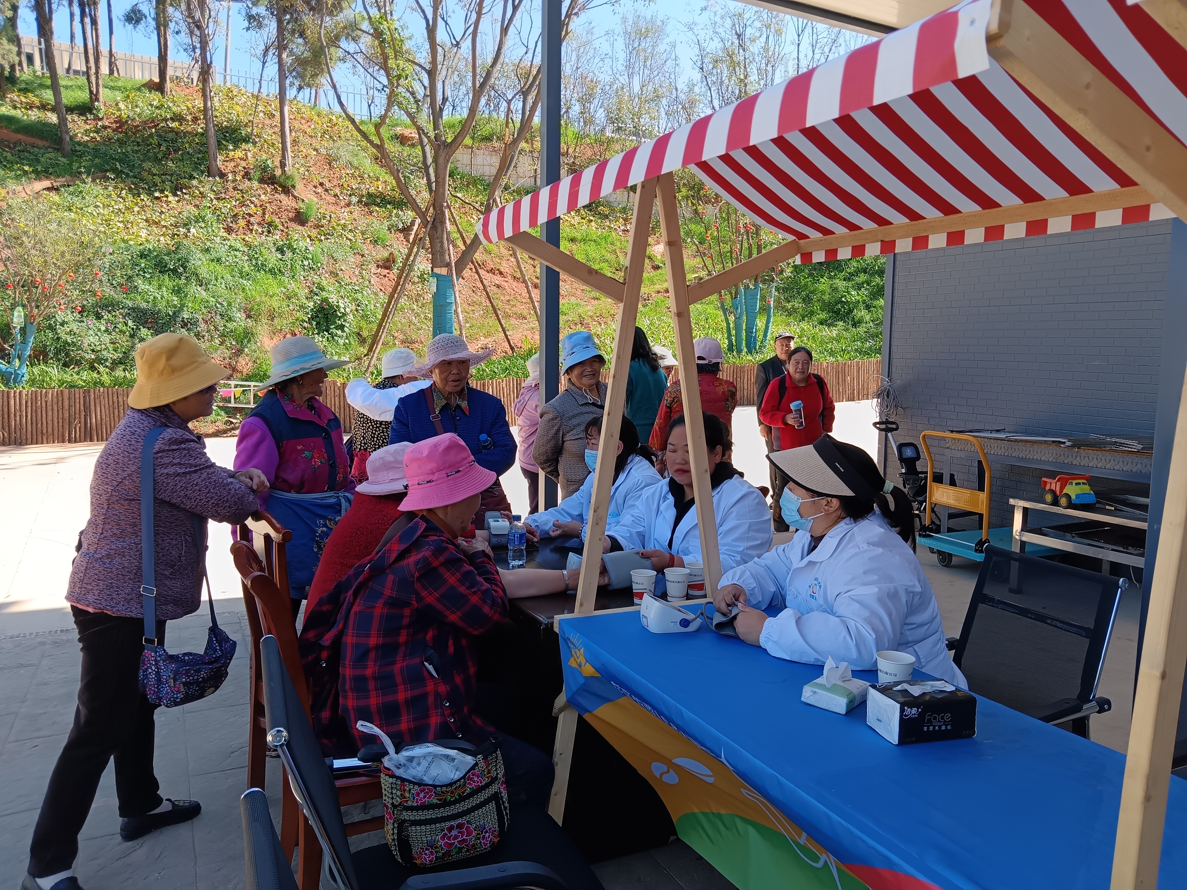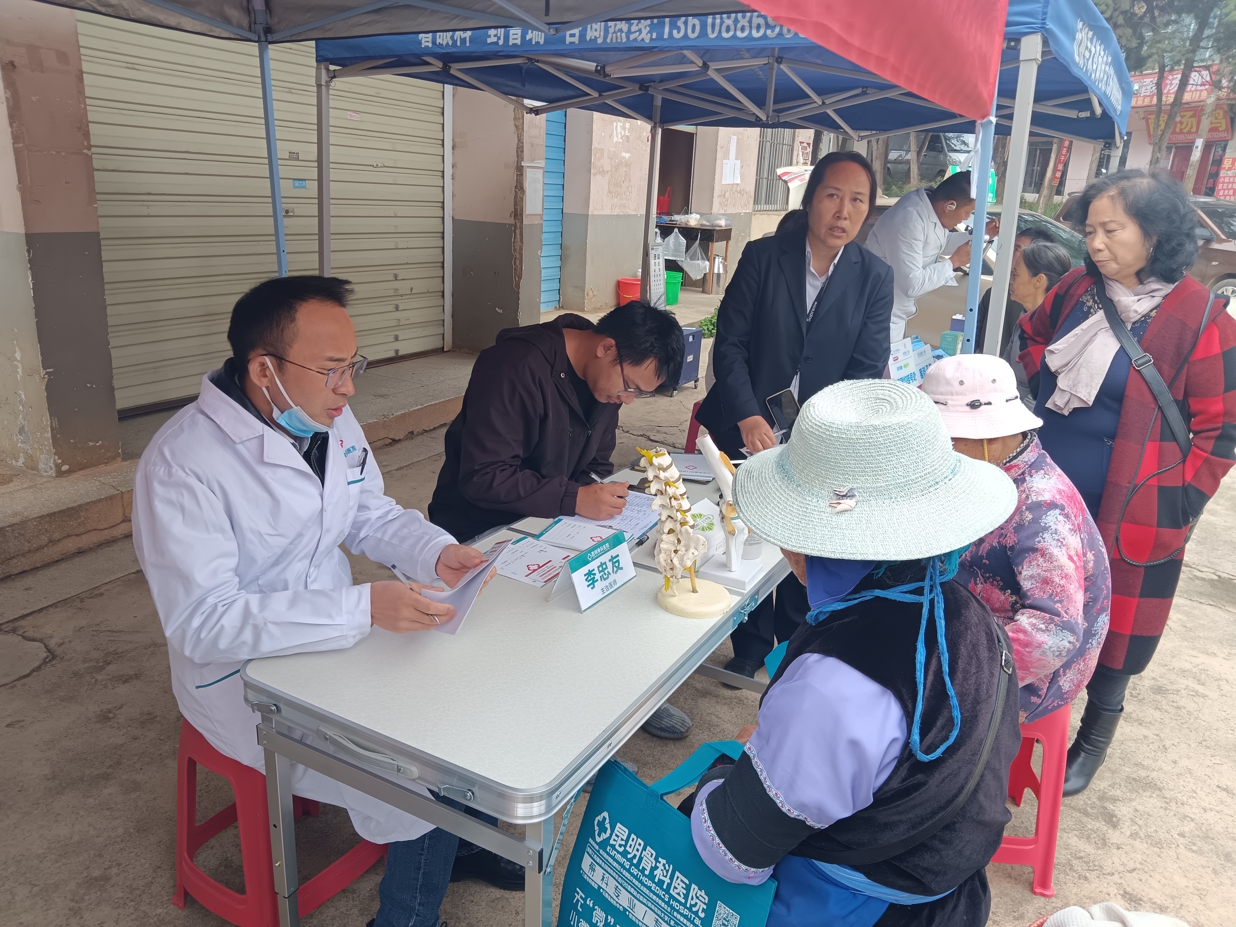 11月6日上午,结合敬老月活动,昆明骨科医院北院区骨病筛查专家组,在小哨校区场部办公楼前开展颈肩腰腿痛、椎间盘突出、关节炎等骨病的免费义诊及测血糖、测血压筛查活动,有适应症的离退休老同志们在现场免费参与骨病问诊、理疗等体验项目,部分老同志们还携带已有的片子到现场请专家参考诊疗。