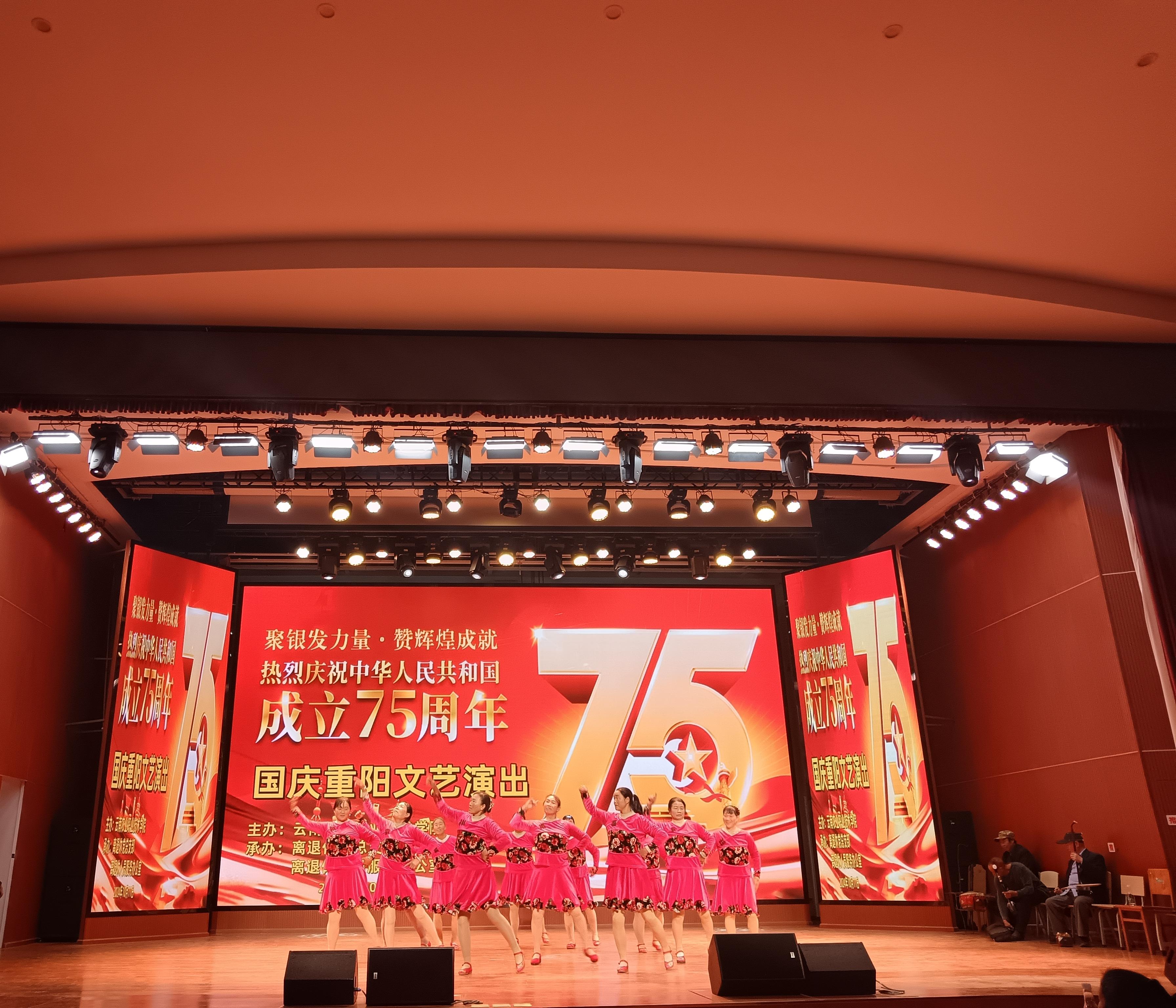 国庆重阳文艺汇演,聚银发力量·赞辉煌成就。10月11日下午,小哨校区蚕桑礼堂响起《我爱你中国》音乐,2024年“国庆重阳”文艺汇演拉开序幕,慷慨激昂的《毛泽东诗词》朗诵、深情流露的《九月重阳想爹娘》和祝福祖国的《花开中国》舞蹈、具有浓郁地方味道的花灯戏曲《姐妹观灯》等十四个参演节目依次登上舞台,展现出退休农职人热情开朗、积极向上的精神风貌,老同志们用精彩纷呈的节目抒发表达出对党和祖国的满腔热情和幸福满足的退休生活。