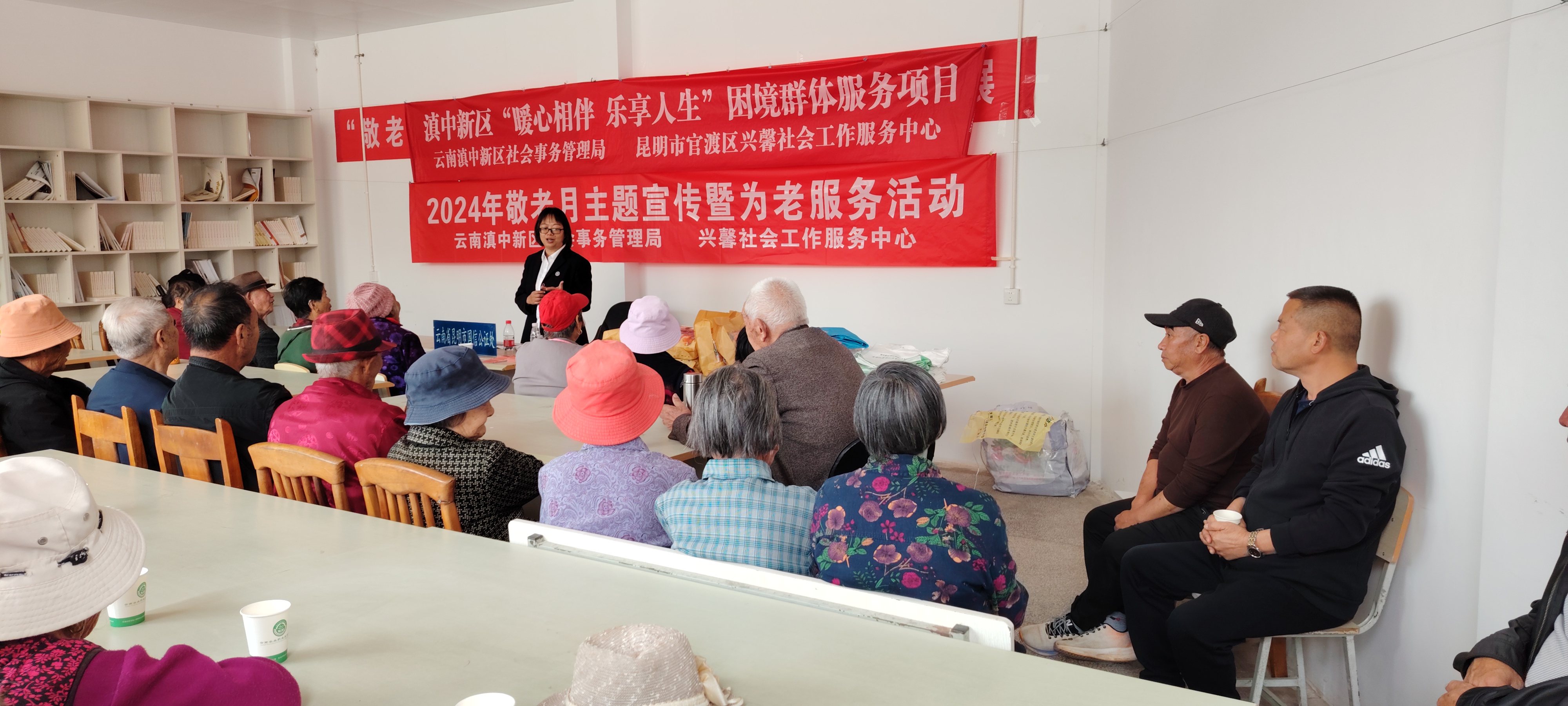 10月29日下午,学校离退休人员服务办公室协同云南滇中新区社会事务局和所属社会工作服务中心、昆明市官渡区兴馨社会工作服务中心爱心链接医院--云桥医院、国信公证处、美发学校等单位,开展老年人权益方面的法律讲座及现场咨询、云桥医院现场义诊、美发学校免费现场理发“敬老月宣传服务”活动。