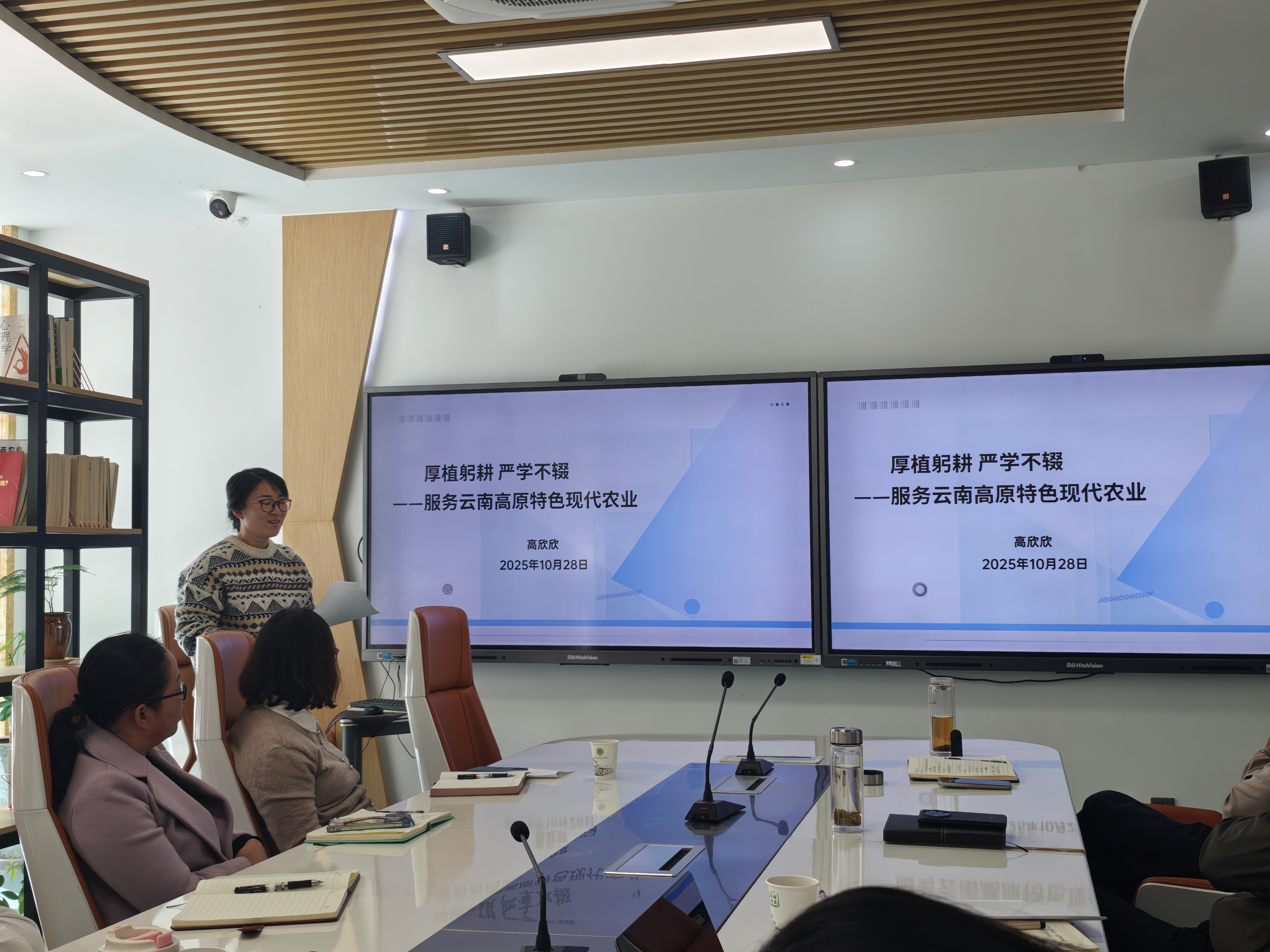 汇报环节,三位教师从不同角度对专业建设进行了思考与分享。文霞老师以《关于鸭脖专业群建设工作的几点思考》为题,系统梳理国家职业教育专业群建设政策演进脉络,从“提升业务水平、完善管理机制、动态调整专业结构”三方面提出后续优化路径,为学院专业群对接区域农业产业链、强化产教融合提供清晰思路。陈巧老师以《锚定专业建设目标,深耕金课内涵打造》为题,结合职业教育“五金”建设背景,针对当前课程开发困境,提出“完善校企协同机制、强化双师型队伍建设、推进数字化教学改革”等解决方案,为学院优化课程体系、提升课堂教学质量提供实践指引。高欣欣老师以《厚植躬耕,严学不缀——服务云南高原特色现代农业》为题,结合现代农业产业转型升级需求,从“培养目标定位、课程体系优化、实践教学强化、思政元素融入”四个维度,阐述现代农业技术专业人才培养方案修订的必要性与具体方向。