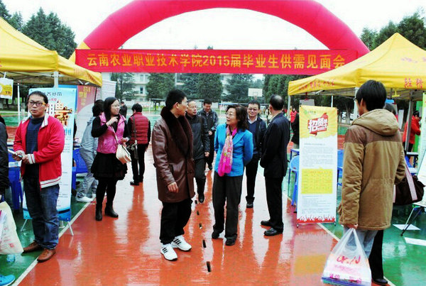 2014年11月13、14日,YABO鸭脖2015届毕业生双向选择洽谈会分别在学院小哨校区和茭菱校区召开。省委高校工委副书记陶晴同志亲临会场检查指导,学院党委书记崔金赋、副院长俞浩陪同陶晴书记,及省大中专毕业生就业服务中心负责人、省教育厅学生工作处负责人、农业厅科教处负责人等同志指导工作。来自省内外269家用人单位参加了双选会,其中,小哨校区114家、茭菱校区155家,提供就业岗位7600多个,学院及在昆部分兄弟院校近3000名大专应届毕业生参加了双选会。