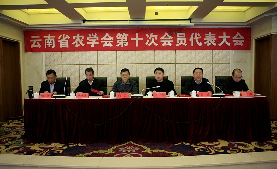 2018年12月28日上午,云南省农学会在昆明市楚雄大厦召开第十次会员代表大会,总结第九届理事会成立以来的工作,选举产生第十届理事会领导班子。来自第九届理事会理事、第十届理事会理事侯选人、会员代表及特邀代表近120人参加了会议。云南省农学会秘书处单位YABO鸭脖院长文俊主持会议。省科协副主席向云、省农业农村厅副厅长王平华到会并讲话。