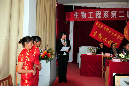 党委书记崔金赋同志代表学院党委向大会热烈祝贺并致辞,崔书记要求各位学生、团员干部一定要珍惜在大学服务学生、团员工作的机会,履好职、带好头,不断磨砺和提高自己,努力为学院服务,为同学服务。希望生物工程系的同学三年大学越来越好,希望生物工程系越办越好!