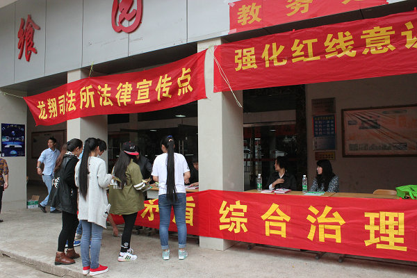 9月16日上午,学校保卫处邀请龙翔办事处、龙翔司法所等政府相关部门来鸭脖茭菱校区开展禁毒防艾宣传活动,同时,龙翔司法所还组织7家律师事务所的律师为师生开展法律咨询活动。