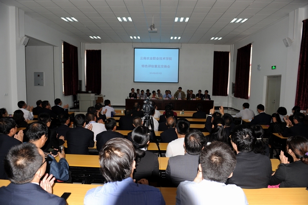2014年6月19日上午9:30,鸭脖在小哨校区新办公楼阶梯教室召开特色评估工作反馈会。云南省农业厅副厅长孙海清,云南省教育厅高教处处长、省高等教育评估中心主任王永全,云南省高职院校特色评估专家组组长云南林业职业技术学院院长马洪军教授、副组长云南热带作物学院院长宋国敏教授、以及专家组成员昆明医科大学杨凌、云南民族大学职业技术教育学院董兴、云南农业大学职业与继续教育学院院长雷兴刚、西南林业大学园林学院樊国盛、云南能源职业技术学院蔡冰副院长、高职院校特色评估项目管理员、云南大学高教院腾文忠书记、项目观察员、云南省高教评估中心副主任刘康宁,学校党委书记崔金赋、院长李永忠、党委副书记赵刚、副院长何明东、副院长赵莉、副院长俞浩、院长助理田应华,以及学校所有中层以上领导干部出席会议。反馈会由评估专家组副组长宋国敏院长主持。